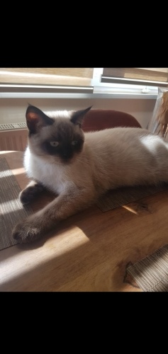 Mia 3 yaşında aşıları yapılmış sakin uysal,kısırlaştırilmis bir kedi. Gözleri gündüz mavi , akşam siyah oluyor.