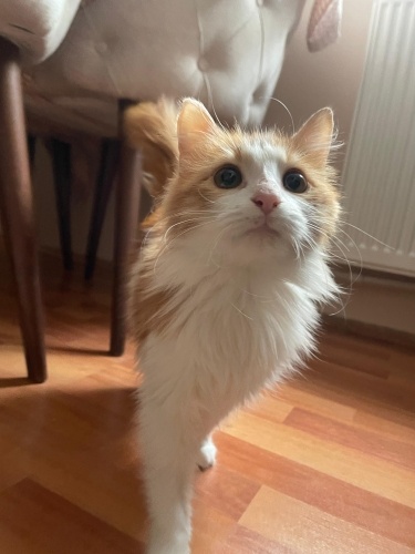 sokakta bir başına bulundu.her türlü kontrolleri yapıldı. 5 aylık. 1.5 aydır himayemizde.sakin, kendi halinde, kucak seven , sessiz bir çocuk asla sokakta yapamaz. diğer kedilerle arası iyi.takip, çip ve vakti geldiginde kısırlaştırma şartıyla maddi imkanı olan vicdanlı bir aile arıyoruz.