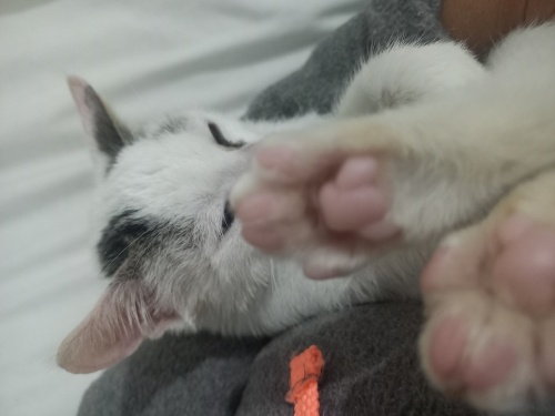 Kuyruğu ve kulakları siyah. Kalan kısımlar bembeyaz. Güzel ve uslu bir kedi. Kendi kendine oynar. Yanınıza gelir sevdirir . İnsancıl. 2.5 aylık. İç dış parazit tedavisi yapıldı.