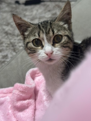 Sokakta bir karaktersiz tarafından korkutulmuş ve Üşümüş halde bulduk veterinere götürdük ve kontrollerini yaptırdık. O kadar sevgiye muhtaç ve tatlı bir kız ki, yanımızdan ayrılmıyor sürekli kendisini sevdirip bizimle uyumak istiyor. Evimizde altı kedimiz olduğu için ona daimi bir yuva arıyoruz şu an bizim korumamız altında. İç parazit ilacı yapıldı. Yüzü de huyu da o kadar güzel ki onu evlat edinecek kişi gerçekten çok şanslı olacak. Yüzünde tam bir kız güzelliği var :).