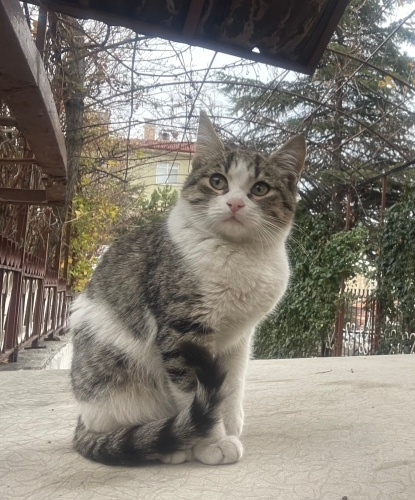 Dişi, tekir, 3.5-4 aylık, sokaklar onun için çok tehlikeli çünkü kendini koruyamıyor, duruşu da çok mazlum, tek derdi kendini sevdirmek, çok masum, ürkek bir kedi. Kuru mama yiyor, tuvalet eğitimi var, diğer kedilerle arası çok iyi. Lütfen ona bebek gibi bakacak bir sahibi olsun, çünkü tam bir bebek 🥺