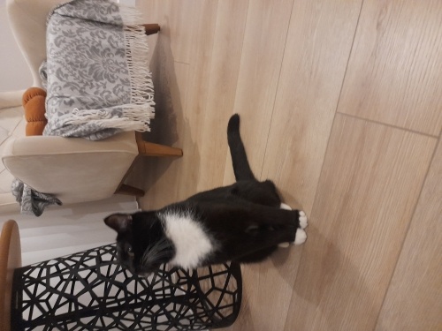 İstanbul Bahçelievler de ikamet ediyoruz.vücut rengi siyah,beyaz önlük ve dört ayağıda beyaz patikli son derece sağlıklı ve sevimli bir kedidir.Kısir ve bütün aşıları tamdır.Eğitimlidir.Ayrıca bir eğitime ihtiyacı yoktur.Uysal ve çok uyumlu bir kedidir.