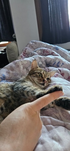 Sokakta bulduğum 5 aylık dişi tekiri evden ayrılacağımdan sahiplendiriyorum. Tuvalet eğitimi var. Sağ gözündeki siyahlık hastalığından kaynaklı bir kabuktur. Kabuğun altında göz vardır. Onun dışında soğuk algınlığı olduğu için antibiyotik tedavisi görmektedir. Bir sokak hayvanına yardım etmek isterseniz sevgi dolu kedimizi sahiplenebilirsiniz.