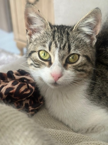Sokakta bir karaktersiz tarafından korkutulmuş ve Üşümüş halde bulduk veterinere götürdük ve kontrollerini yaptırdık. O kadar sevgiye muhtaç ve tatlı bir kız ki, yanımızdan ayrılmıyor sürekli kendisini sevdirip bizimle uyumak istiyor. Evimizde altı kedimiz olduğu için ona daimi bir yuva arıyoruz şu an bizim korumamız altında. İç parazit ilacı yapıldı. Yüzü de huyu da o kadar güzel ki onu evlat edinecek kişi gerçekten çok şanslı olacak