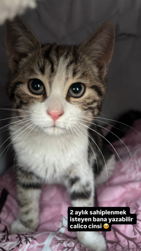 Mersinde 2 aylık calico cinsi bir kedimiz var sahiplendirmek istiyoruz kum eğitimi mama eğitimi her şeyi var çok uysal