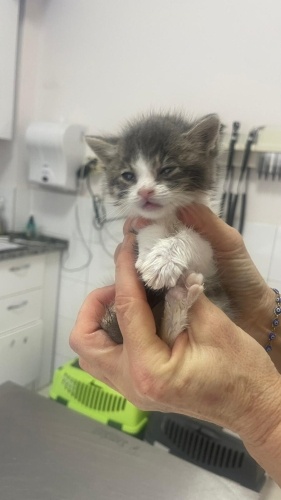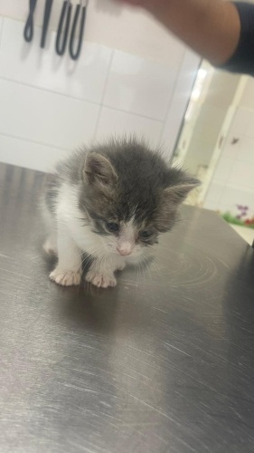 Yaklaşık 6 haftalık olan bu minik yavru, barınakta gerekli tedavileri tamamlandıktan sonra artık sıcak bir yuva arıyor. Gri-bej renkte, sevimli ve masum bakışlı.
