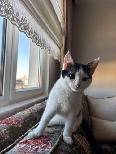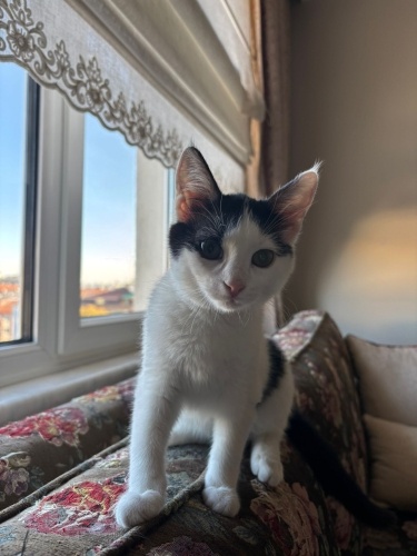 Arabanın kaputundan bulduğumda 1 aylıktı şimdi 3 aylık oldu pişmaniye. Kum eğitimi var, kuru mama yiyebiliyor. Seslendiğinizde koşarak geliyor. Sevgi dolu bir kız. Biraz oyuncu. Sokakta korktuğu için yuva arıyoruz.