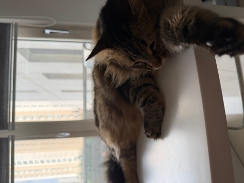 Sitemizin bahçesine girerken gördük ve hemen veterinere götürerek ev kedisi olduğunu ancak çipi olmadığını öğrendik . Veterinerde cinsiyetine baktırmayı unuttum :) ama tekrar götüreceğim . Sakin ve sessiz bir kedi , evimde yeterli bir alan olmadığı için holde misafir ediyorum . Umarım ona sıcak bir yuva olur içinizden biri ve sokağa terkedilmiş canımız sokağa geri dönmez. Kısır değilse kısırlaştırması tarafımdan kendi veterinerimde karşılanacak . Tek istediğim onu koruyup kollayacak bir ailesinin olması