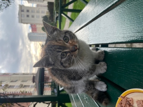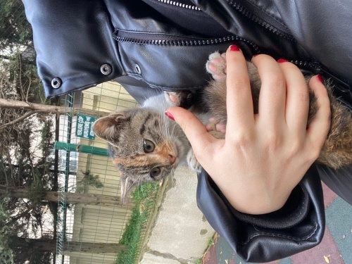 Yaklaşık 1 hafta önce sokakta buldum, annesini kaybetmişti. Veterinere götürüp iç parazitini ve vitamin aşılarını yaptırdım. 3-4 aylık dişi bir kedi. Çok uysal ve sevecen. Tuvalet eğitimi var. Bilinen herhangi bir hastalığı yok. Ömürlük yuvasını arıyor.