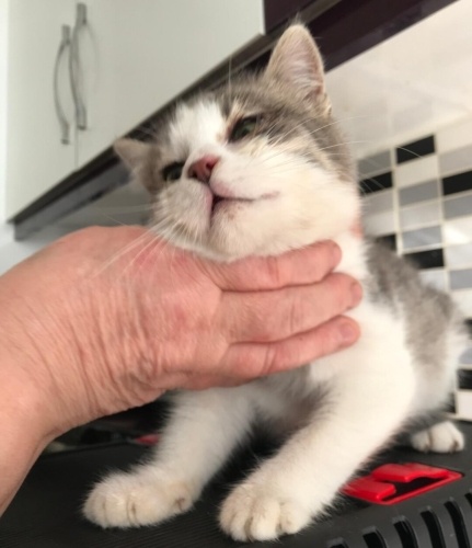 Pelinsu besleme bölgemizde annesi ile birlikte besleyip baktığımız gözetip kolladığımız bir bebek ama ne kadar da olsa sokakta ve tehlikelere açık. Yanında annesi olduğu için bir nebze içimiz rahattı ama maalesef annesini de kazada kaybettik ve tek başına kaldı kendini çok koruyamamış gözleri enfeksiyon kapmış hemen tedavisine başladık sağlığı gayet yerinde ama tedavisi bittikten sonra gidecek hiçbir yeri yok hepimizin evleri fazlasıyla kedi dolu ve eve bir kedi geldiğinde strese girip hasta oluyorlar O nedenle bu miniğimize acil yuva arıyoruz özellikle bir can bakmanın sorumluluğunu alabilecek kişilerle iletişim halinde olmak isteriz. Kızımız çok tombiş çok tatlı bir şey aslında melez bir kedi ama seçeneklerde böyle bir şık olmadığı için direkt Tekir olarak işaretledik gideceği eve sevgi ve bereket getireceğini %100 eminiz. Lütfen sonu sokakları olmasın. Havalar soğumadan onu sıcacık kalbine ve sıcacık evine alabilecek meleğini arıyoruz.