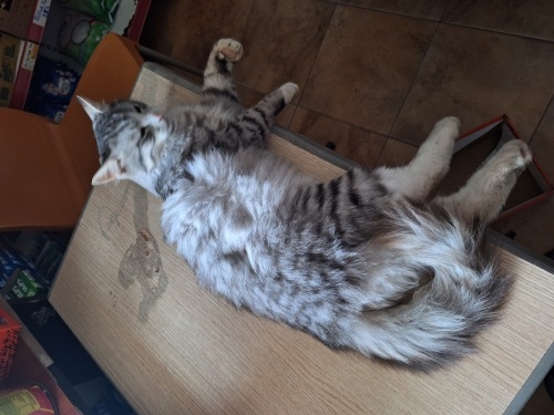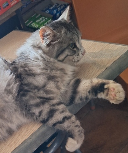 Ayvalık'ta bir Büfede barınmakta şimdilik..6 aylık,erkek,inanılmaz sakin,uysal ve kucak seviyor..bir şeyler almak için girdiğimde gördüm..bebekli,çocuklu bir ev için o kadar uygun ki..ani tepki veren kedilerden değil..Ayvalık ya da çevre yerleşimlerden olanlar gelip görebilirler.