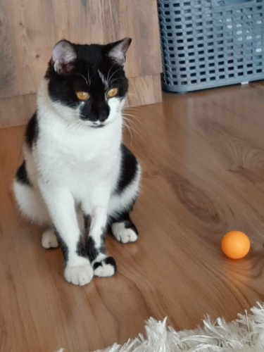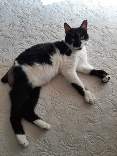 Hikayesi : Biz bir akşam eve döndüğümüzde, apartmanımızın önündeki halıda, tam dış kapının önünde arkadaşıyla birlikte sarılıp uyuyorken görmüştük, hava soğuktu :( zaten genel olarak gelip giden kediler için mama ve su koyuyorduk, onları öyle görünce hemen kedi evi aldık, içine minder koyduk, özellikle Beşiktaş sürekli o yuvadaydı. Ancak kuyruğu ile ilgili talihsiz bir olay yaşamış görünce veterinere gittik, veterinere gittiğimizde huyunu suyunu pek bilmiyorduk açıkçası, klinikte kaldığı sürece kendini kimsesiz hissetmesin diye sürekli ziyarete gittik, her gittiğimizde bize ekipten hep farklı kişiler eşlik etmişti ve hepsi de aynı şeyi söyledi, "çok uysal, sokağa mı dönecek, huyu suyu çok güzel bir kedi, çok şapşik bir kedi" şeklinde hep aynı sözleri duyduk, aslında bizden önce onlar tanıdı Beşiktaş'ı. Şimdi geçici yuvasıyız ve gerçekten öyle, çok uysal, çok sevgi dolu.
