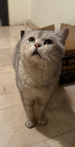 Merhabalar. Bu gümüş renkli kediyi sokakta bulduk ve soğuktan korumak için geçici olarak güvenli bir alana aldık. İsmini renginden dolayı Duman koyduk. Muhtemelen sokağa terk edilmiş çünkü ev yaşamına çok alışkın. Ancak benim imkanlarım kısıtlı olduğu ve evimde kalıcı bakma şansım olmadığı için ona acilen ömürlük yuvasını arıyorum.