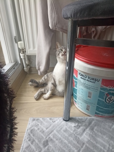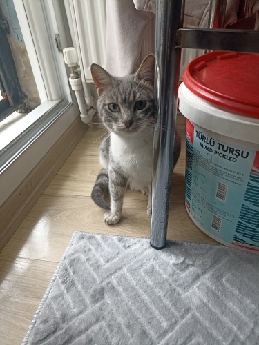İzmir karabağlar günaltay mahallesinde tahminimce 5 aylık civarı bir kedi. Kendini sevdirmek istiyor ama o kadar ürkek bir kedi ki buna rağmen duvarlara sürtündüğünde bile mırıl mırıl mırlıyor. Sokak kedileriyle beraber yaşıyor ikinci kedi olabilir ama alıştırmanız gerekir. Çok tatlı çok naif bir kedi LÜTFEN ONA YUVA OLUN LÜTFEN sokaklarda ölsün, erkek kediler tarafından zarar görmesin