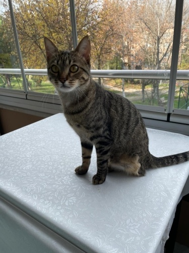 Minnoş dışarda bacağı kopmuş ve iltihap kapmış halde bulundu, bacağı kesildi ve 3 bacaklı olarak kaldı, geçici bi balkonda durdu ama artık gitmesi gerekiyor havalar soğuk ve engelli olduğu için sokakta yapamaz :( dişi 6 aylık kısırlaştırıldı çok sevecen hep kucak istiyor hiçbir zararı yok bir bacağının olmaması sorun değil kendi kendine yetiyor, kum eğitimi de var. ona ömürlük bakacak ailesini arıyoruz lütfen satın almayın sahiplenin.