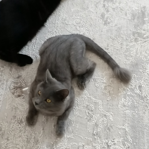 minnoşumuzu bir apartmana sığınmış halde bulduk evden kaçalı ya da atılalı çok fazla bir zaman olmamış belli ki o gün içerisinde kendine sığınacak bir yer bulmuş. geçici olarak evime aldım ama evdeki kedilerimle anlaşamadığı için ona gerçekten iyi bakacak sabırlı davranacak ailesinden bir fert olarak görecek yuva arıyorum. kedimiz kısır bulduğunda tıraşlıydı şimdi tüyleri bayağı uzadı british short hair mavi Rus melez bir kedi. Çok sıcakkanlı insan seviyor kedilerle de arası iyi ama çok oyuncu sosyal bir kedi gündüz bayağı uzun zaman uyuyor. onun kudurukluğunu tolere edecek sabırlı davranacak Ama onun sevgisine de sonuna kadar hissedecek meleğini arıyoruz.. kedi tecrübesi olanlar bilir yavru kediler oyuncu olur bir süre sonra durulurlar.
