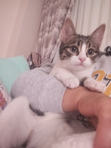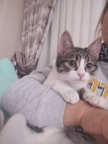 müjgan, sokak bilmiyor. sokak kedisi olan annesi evimizde doğurdu. kucak kedisi sevecen bir bebek 4 aylık. ic-dis parazitleri yapıldı. doğduğundan beri el bebek gül bebek bakiyoruz. asla terk edilmeyeceği maddi manevi sorumluluk alabilecek vicdanlı bir aile arıyoruz.takip ve çip şartımız vardır tabiki vakti geldiğinde de kısırlaştırılmasini istiyoruz.sevgiler.