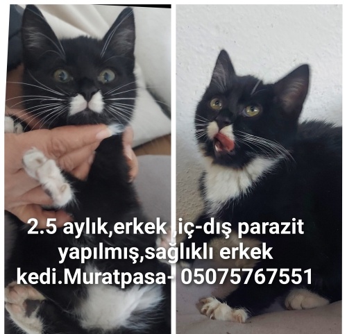Annesiz kalmış,2.5 aylık oyuncu,sağlıklı,ic dis parazit yapılmış, erkek kedi.