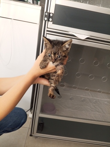 ENGELLİ CANLARA ÖNCELİK!! Bu yavrucak 1 buçuk aylık, iki gözüde kör malesef 22 gündür veterinerde kafeste artık oradaki süresi doldu sokağa gidecek bu yavrucak dışarda yapamaz. Lütfen acil yuva arıyoruz!!