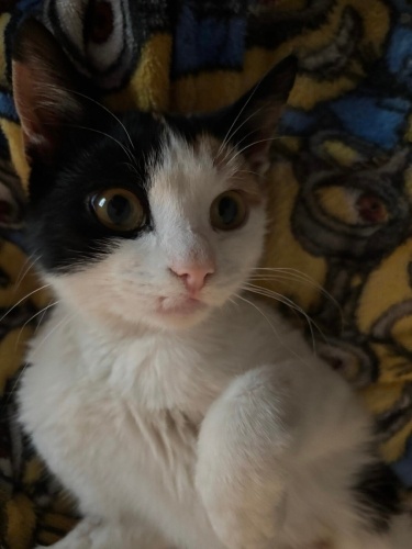 Bu tatlı kediciğimizin ayağı biraz aksak. Ayağında kırık vardı ama müdahale edemeden kaynamaya başladı. Kucak delisi, aşırı uysal bir kedidir. Tam bir ev kedisi, kucakta yatmaya bayılır.