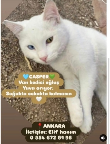 📍ANKARA İletişim Elif hanım 0 554 672 51 95 💚Casper🩵 8 aylık kısırlaştırılmış Van kedisi oğlumuz yuva arıyor. İç dış parazit uygulamaları ve 2 doz karma aşıları yapıldı. Bu soğuklarda malesef bahçede. Sıcacık yuvasında güzel gözleriyle size baksın. Hiç bir ücret talep edilmeyecektir. Yeter ki ömürlük çok sevileceği bir yuvası olsun 🐾