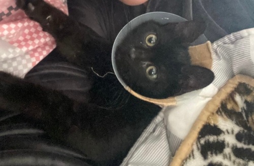 bu bebişin ufak bir yarası vardı o yüzden kafalık takılmıştı. şimdi iyileşti, artık kafalık kullanmıyor. gayet sağlıklı, erkek bir kedi. 3-4 aylık. kum eğitimli, uysal bir bebek. ömürlük yuvası olsun istiyoruz. sahiplenmek isterseniz iletişim 05453575949 Tekirdağ
