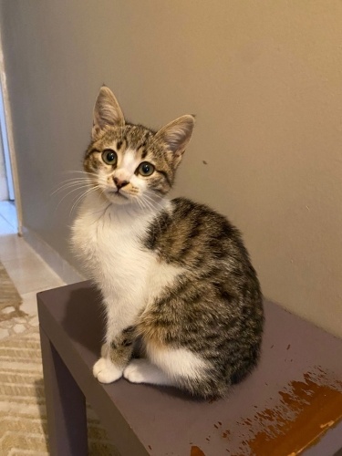 Sokakta ıslanmış ve üşümüş halde bulup ısınması için evimize aldığımız bebek dostumuza daimi evini arıyoruz. Veteriner tarafından sağlık kontrolleri ve iç-dış parazit aşıları yapıldı. Tam bir kucak kedisi, tuvalet eğitimi mevcut, çok insan canlısı küçücük bir bebek. Onu sevecek, ona iyi bakacak ailesini arıyoruz.
