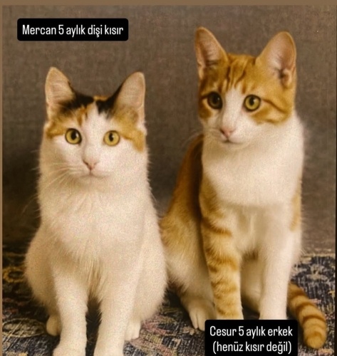 İsimleri MERCAN ve CESUR. 3 renkli olan dişi ve kısır 2 renkli olan erkek ve henüz kısır değil. Sağlık sorunları YOK‼️Sahipleri son evre KANSER hastası ‼️Entübe edildi‼️ Son isteği çocuklarının yerine koyduğu canlarının güvenli ve ömürlük yuvalarına kavuşmasıydı. Vicdanlı kişiler olarak bu son dileği yerine getirmeye çabalıyoruz ve sizlerin desteğinize ihtiyacımız var. Bu uysal, sevgi dolu ve ev terbiyeli çocukları sevginizle sarmalayıp onlardan bir ya da ikisinin meleği olur musunuz? İLETİŞİM TEL:5324839961 TAKİP ŞARTI VARDIR ‼️