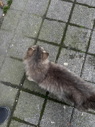 Bu güzel uzun tüylü gri kediyi sokakta buldum. Oldukça bakımlı görünümlü olmasına rağmen şu an sahipsiz ve güvenli bir yuvaya ihtiyacı var.