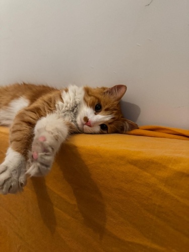 Tonguç'u sokakta buldum ama daha önce evde bakılıp atıldığını düşünüyorum. Çantaya kendi kendine girdi aşşırı uysal çok oyuncu ve sevgi bağımlısı. Sürekli gelip sizin kucağınıza yatmak istiyor ve onu sevmeniz için peşinizde dolanıyor. Tuvalet eğitimi var. Şu anda birazcık kirli ama eve daha yeni aldım :( Bol tüylü kuyruğu da kocaman çok güzel. Yaklaşık 6 aylık olduğunu öğrendik. Ömürlük yuvasını arıyoruz. Ücretsiz sahiplendirilecektir.