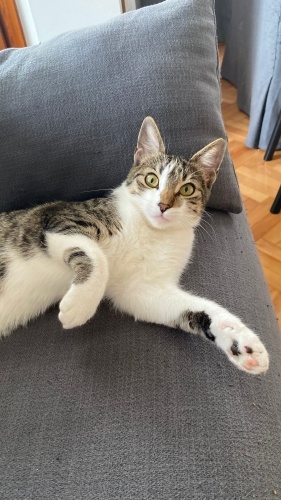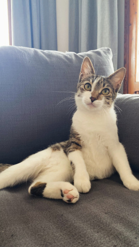 yedi aydır korumada, mayıs doğumlu dişi… haziran ayında çöplerin arasında tek başına bulunup korumaya alındı… kasım ayında kısırlaştı… yetişkin ve engelli kedilerle uyumlu, kum alışkanlığı var, klinik kontrolü tam ve tarafımızca çiplendi (çip devri yapılacaktır) karnesi mevcut