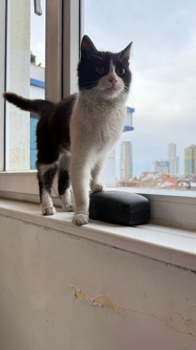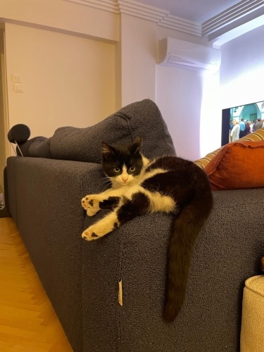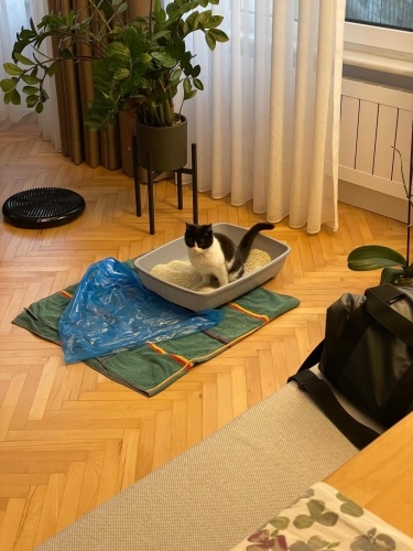 Sislide arabalarin arasindan kurtardim, kiyamadim istinyeye eve getirdim. Veterinerde ilk muayenesi ve tedavileri yapildi, parazit uygulamalari da yapildi. Yaklasik bes aylik erkek bir bebek. Kuru mama yiyiyor, kum egitimi var. Eve gelince kendini bir güzel temizledi. Biz evdeyken sürekli guruldayan, sevgi dolu bir bey. Henuz hicbir yaramazligini görmedik. Esim de ben de alerjimiz oldugu icin sahiplenemiyoruz. Umarim ömürluk yuvasini bulur.