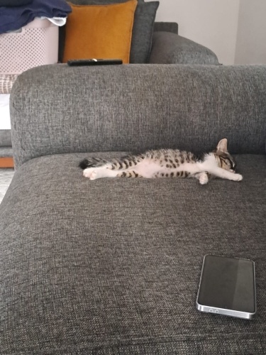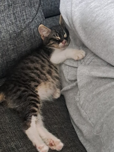 Bu minik yavru yaklaşık 2.5-3aylık, ev ortamında büyümüş, kendi istediğinde gelip sevdiren, bağımsız ama insanlarla iyi bir iletişimi olan bir yavru.