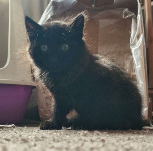 Yağmurda ıslanmış perişan halde titrerken buldum. Geçici olarak getirdim kuruyunca tüylerinin gri kalesini gördüm. Tuvaleti birkere gösterdim çok uslu , zıplayarak oynayan harika bir kız. Evde 3kedim olduğu için ömürlük yuvasını arıyor