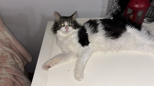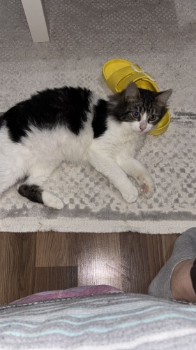Ona bakan kişi sokağa attı hastalandı eve aldım..On bes kedim var ve ona yuva arıyorum..Çok sırnaşık sevgi dolu bol tüylü bir çocuk suan bir sağlık sorunu yok..İç dış uygulamaları yapıldı..Bu güzelliği kaçırmayın derim 🥰