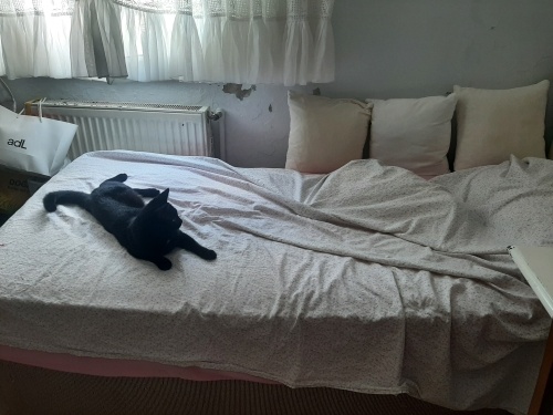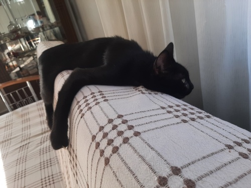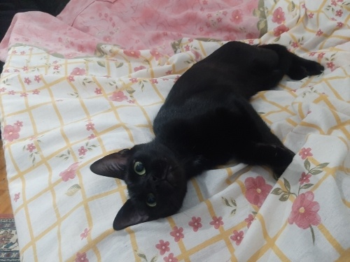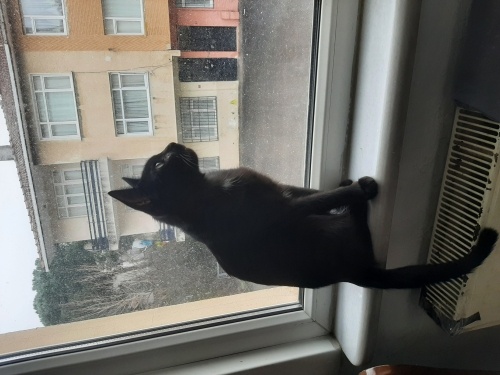 Çok garip, mazlum bebekken çok veterinere gitti ondan çok ürkek. İnsan çok sever. Yemek sever ama mama yemedi lazım. Çok gariban ve sokaktan çok korkar. Dışarıda kalırsa var gücüyle miyavlar. Dışarıda yapamaz. Yaklaşık bir yaşında, dişi, aşıları var, iç dış paraziti var. Şu an kardeşi ve üç büyük pisiyle evde yaşamdkta. Ömürlük yuvaya ihtiyacımız var. Tabii ki O'nu sevecek, bakacak ve terk etmeyecek merhametli, vicdanlı bir aileye. Duyarlı insanlar lütfen destek olun bu garip yavruya!