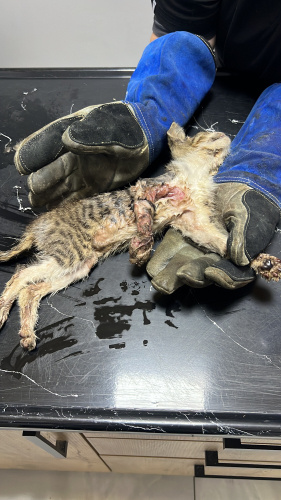 İsmi Victor. Araba çarptığı için ön patisi ampute edildi, çenesi düzeltildi. Karma ve kuduz aşıları yapıldı. İç dış parazit aşıları yapıldı. Tahmini 6 aylık erkek bir yavru. Victor şu anda geçici yuvasında, ancak yakın illere ulaşım sağlanabilir. Kısırlaştırma ve takip şartı vardır.