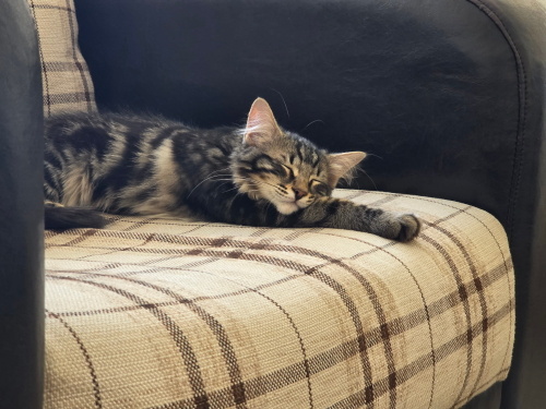 Annesi reddettiği için geçici olarak sahiplenilen yavrunun ilk yaş aşılarının tamamı yapıldı. Şuan 8 aylık. Meraklı ve asla yalnız bırakmayan bir karakteri var. Şimdiye kadar herhangi bir cırmalama ısırma girişimi de olmamıştır. Uysal ve sevgi, bekleyen bir yapısı var. Geçici sahiplenildiği için yuva bulunulmazsa sakağa bırakılmak zorunda.