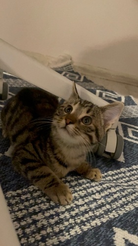 3 Ekim’de doğum esnasında annesinin patisine yapışmış halde bulduk. Kardeşiyle beraber çok sağlıklı büyüdü. İç dış parazit ve 1. Karma aşıları yaklaşık bir ay önce yapıldı. 3 aylık olduğu için çok tatlı meraklı halleri var. Kucağınıza aldığınızda uyuyakalacak kadar kendini sevdiriyor. Annesi ve kardeşiyle çok uyumlu. Kardeşine göre biraz daha ürkek ama gözününüzün içine bakarak sizi takip ediyor. Emmeyi bıraktı, kuru mamayla besleniyor. Kuma tuveletini yapıyor. Oyuncakla oynamayı çok seviyor. Yakınında olduğumuzu anladığında miyavlayıp bizi çağırıyor. Kapısını açtığımda da ilk kucağıma geliyor. Sokağı hiç görmedi. Ben evden ayrılmak zorunda olduğum ve gideceğim yerde üç köpek olduğu için yanıma alamıyorum. Bakmaya başladığımızdan beri sahiplendirmeye çalışıyorum. Aksi halde cuma günü anne ve iki yavruyu sokağa bırakmak zorundayım