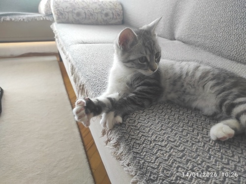 Duman renkli skotish kırması iki aylık kızımıza yeni bir yuva arıyoruz. Dost canlısı, oyunbaz, tuvalet eğitimi almış bir yavrudur.