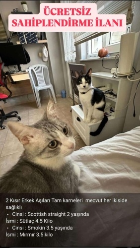 SAĞLIK DURUMLARI: İkisi de KISIRLAŞTIRILMIŞTIR. Çipleri takılıdır (Devri yapılacaktır). Tüm aşıları tamdır, karneleri mevcuttur. Bugüne kadar hiçbir sağlık sorunu yaşamamış, iştahlı ve çok sağlıklı kedilerdir.