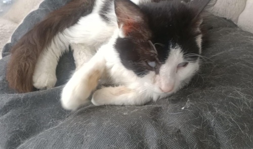Bulduğumda çok kötü haldeydi. Sürekli veterinere gidip geldik. Fotoğraflarda o günkü halleri de var. Çocuğu almasaydım ölecekmiş, ağzındaki iltihap nedeni ile 3 gün aç kalmış. Kurtuldu çok şükür. Tahmini 6, 7 aylık. Kısırlaştırıldı. İç dış parazit ve karması yapıldı. Şimdi çok hareketli, sevgi delisi, insan istiyor. Dışarıda yaşayamaz.. Yaş mamayı sulandırıp üzerine kuru mama koyunca yiyor... Siz de evinizde enerji ve hareket olmasını isterseniz, smokin mutlu olacağı bir yuva istiyor... Benim 5 kedim var...🤷♀️ Ben iyileştirdim. Siz Kurtarın.🙏❤️ Lütfen WhatsApp' tan yazınız. +90 536 672 80 30