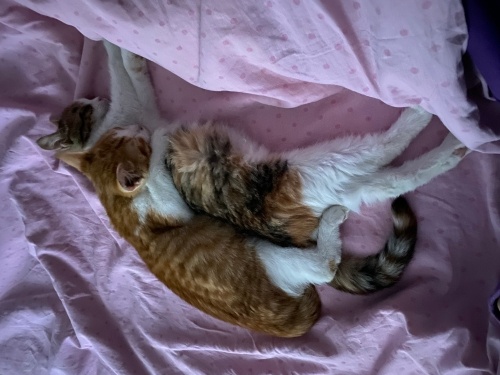 takip şartlı ve kedi filesi olan eve sahiplendireceğim. ikisini sokakta gözleri iltihaptan kapanmış halde buldum 1 ay gözlerimi tedavi etmek için uğraştım o sırada binamda duruyorlardı. sonra üst solunum yolu enfeksiyonu ve ishal oldular sıcak evde daha çabuk iyileşirler diye mecburen eve aldım. gastrointestinal mama ile besleniyorlar bağışıklıklarının yüksek kalması gerekiyor tuvalet egitimleri var. 5 aylıklar sarman erkek calico dişi. kısırlaştırdıktam sonra sahiplendirecegim. gözlerinde görme problemi kaldı ama evde sorun yaşamıyor sadece sokakta bu şekilde yapamazlar.