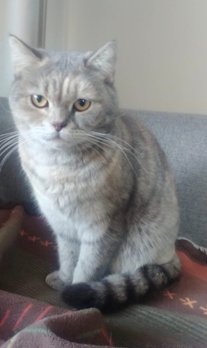 British silver cinsi 1-2 yaş civarında dişi hayvansever sokakta buldu kısırlaştırdı.Evinde 10 dan fazla kedi var ve diğer kedilerden dayak yiyor çok ürkek.Tek kedi olarak sahiplenecek iyi bakılacak takip şartıyla yuva aranıyor.