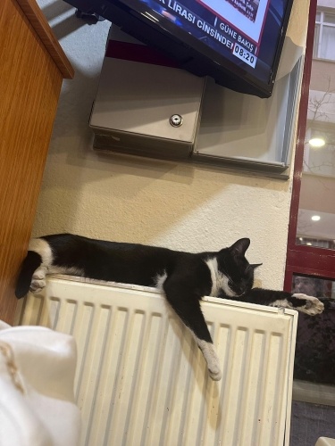 Rimel erkek yavru kedi. Her sabah hastanemize geliyor, çok cana yakın ve uysal bir kedi. Tek isteği sıcak bir yerde oturabilmek, kucakta oturmayı çok seviyor. Soğuklardan hasta olmuş antibiyotiğe başlandı, tedavisi bitene kadar veteriner kliniğinde kalacak. Geçici/kalıcı yuva arıyoruz.