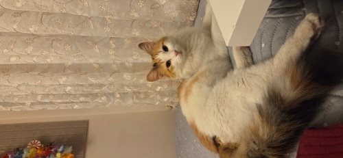Bahçemizde kalıyordu ,dışarıda hayatta kalamayacak kadar narin bir kedi, sevgi dolu sürekli kendini sevdirmek isteyen bir kedi. Evimizdeki kedi hırçın olduğu için evimiz onun için uygun değil malesef. Genel sağlık durumu çok iyi veterinerde kontrolleri yapılmıştır, sadece Giardia testi pozitif çıktığı için ilaç tedavisi görüyor sonrasında aşıları yapılacak. Onu sevecek sevgi dolu yuva arıyoruz