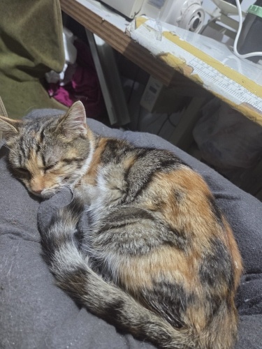 Yavrucak genel olarak sağlıklıydı; ancak soğuk havalara dayanamadığı için dışarıda ciddi şekilde üşüyor ve titriyor. Şu anda enfeksiyon kaynaklı bir rahatsızlık geçiriyor. Bu nedenle iki gün üst üste veterinere götürüldü, tedavisi başladı ve devam edecek. Geçici çözüm olarak, müstakil evin deposunda, ısıtma desteğiyle korunaklı şekilde tutuluyor ve bakımıyla yakından ilgileniyoruz.