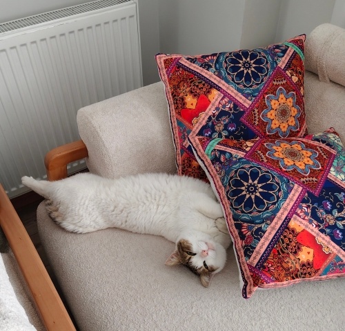 Tekirdağ Çerkezköy'de evimizin bahçesinde olan kedilerin arasında kendisi. Biz ona Prenses diyoruz. 5 gün önce veterinere kontrol ettirmek için götürdük ve iç dış parazit aşıları yapıldı. Siz neden bakmıyorsunuz derseniz ben geceleri ısınsın diye eve alıyordum giriş kattayız ama hem alerjim var hem de hamileyim. Çok cana yakın ve evden hiç gitmek istemediği için ona ömürlük yuva aramaya karar verdim. Gözündeki kalıcı bir hasar o nedenle veterinerimiz müdahale etmedi ama siz yine de ilgilenirseniz seviniriz. Ve dışarda kaldı mama, ev yemeği derken kabızlık çekiyor bu sıralar. Lavman yapıldı ama sonrasında ar a ara bahçeye yolladığımızda yapıyor mu emin değiliz. Evdeki kuma yapmadı ara ara içine girip çıktı sadece.