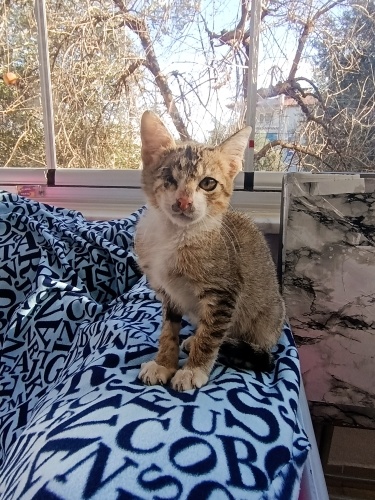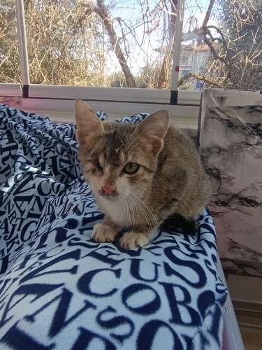 Balıkesir Edremit Altınoluk ta tekir tek gözü alındı uzun bı tedavi süreci geçirdi hayata tutundu ömürlük yuvasını arıyor