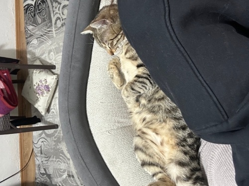 3 gün boyunca arabaların motorlarından çıkarmaya çalıştığımız sonunda başardığımız o kedi… Kurtardığımızda max 2 aylıktı o günden beri bizimle. 8 kedi var sokaktan kurtardığımız artık hepsini yavaş yavaş kısırlaştırıp yuvalandırmaya çalışıyoruz. Kendi halinde akıllı bir kız insanları çok seviyor kardeşleri dışında diğer canlılara pek uyumlu değil başlarda ama zamanla alışıyor. Köpekle büyüdü. Tam bir kucak manyağı.